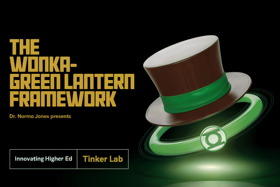 Hey everyone! Dr. Norma Jones here, and welcome back to The Tinker Lab series for the Innovating Higher Ed podcast. Today, I have something whimsical, thought-provoking, and yes, slightly out there. But trust me, it works. We’re talking about AI in higher education by channeling the energy of two wildly different pop culture icons: Willy Wonka and the Green Lantern.
